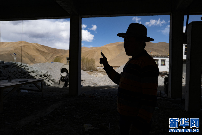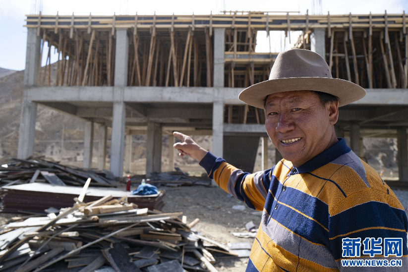 “牛头旅馆”老板多吉在新盖的旅馆监工(5月17日摄)。新华社记者 普布扎西 摄