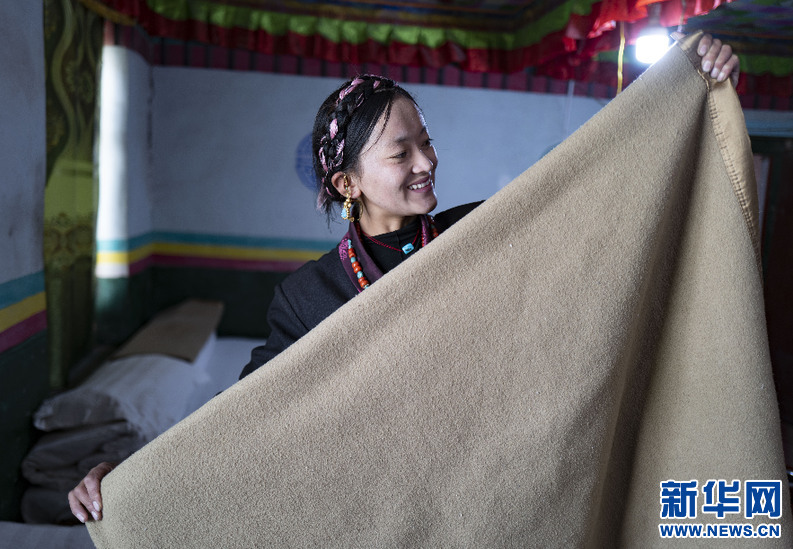 “牛头旅馆”老板多吉的儿媳在旅馆里整理被褥(5月17日摄)。新华社记者 普布扎西 摄