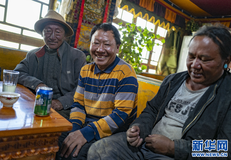 “牛头旅馆”老板多吉(中)和朋友在旅馆里聊天(5月17日摄)。新华社记者 普布扎西 摄